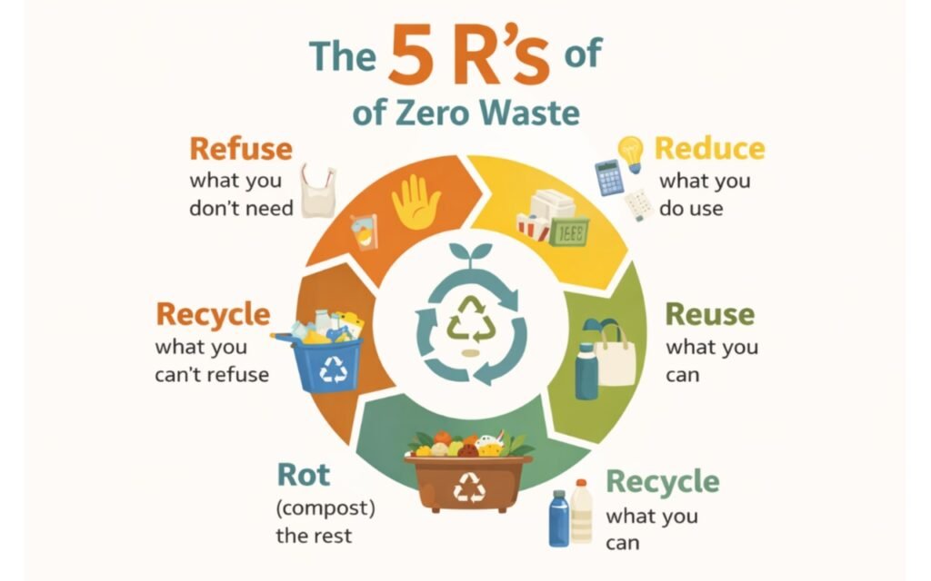 A Zero Waste Lifestyle focuses on minimizing the waste you send to landfills by rethinking how you consume, reuse, and dispose of products. It’s guided by the 5 R’s: